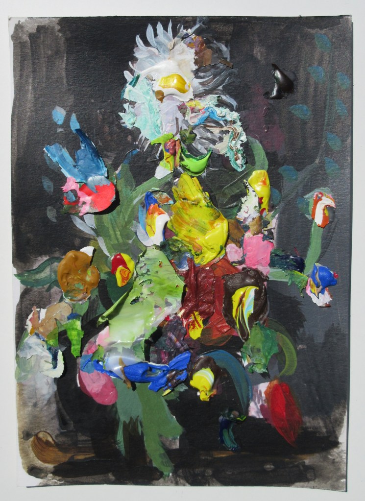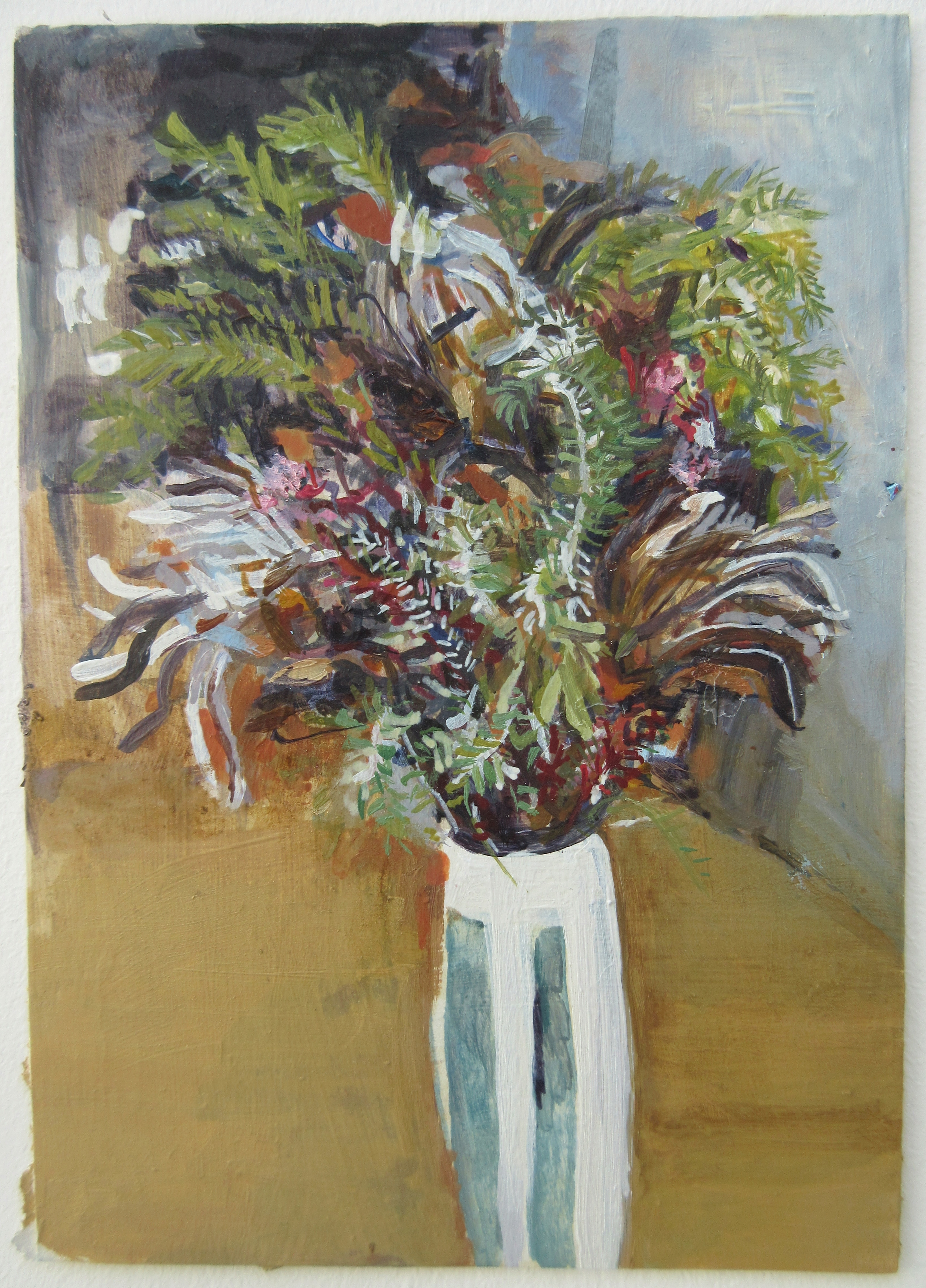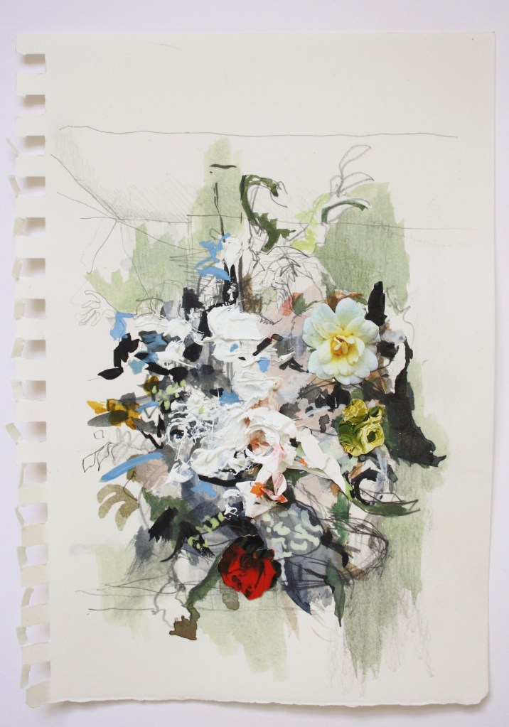 AuthorAcrylic, Primer and Pencil on Paper 30cm x 21cm £250Kablooie Acrylic, Ink and Pencil on Paper 30cm x 21cm £250MuseAcrylic and Pencil on Paper 30cm x 21cm £250 Expose Acrylic and Pencil on Paper 30cm x 21cm £250Reflex Acrylic, pencil and pen on Paper 30cm x 21cm £250Bunch with Bugs Ink, Acrylic and Biro on Paper 30cm x 21cm £300Renegade Ink, Acrylic and Biro on Paper 30cm x 21cm 2020£350Composition in Black 2 Marker Pen on Paper with Acrylic 30cm x 21cm Composition in Black 1 Marker Pen on Paper with Acrylic Site with Black Ink, Acrylic and Watercolour on Paper, 15cm x 21cm, 2020Site with Many Colours, Ink, Acrylic, Watercolour and Collaged Dried Acrylic Paint on Paper, 15cm x 21cm, 2020Site with Red, Gouache and Watercolour on Paper, 15cm x 21cm, 2020Site, Gouache and Watercolour on Paper, 15cm x 21cm, 2020An Upturn, Ink-pen and Wash, Acrylic on Paper, 42cm x 30, 2019Flower, Acrylic and Graphite on Paper, 60cm x 42cmTranslation, Oil on Board, 23cm x 27cmResemblance, Biro, Acrylic and Ink on Paper, 21cm x 16cm, 2019Lake, Oil on Board, 23cm x 27cm, 2019Duster Acrylic, Marker and dried Acrylic paint (collaged pieces) on Paper 42cm x 29cm On Delacroix, Acrylic on PostcardCreeper, Acrylic and Ink on Paper, 42x29cm Influence, Acrylic, Ink and Gouache on Paper, 2018Tulips on a Table, Watercolour on Paper, 42cm x 30Illumination: Tulips with Black, Gouache, Watercolour & Ink on Paper, 21cm x 15cmPerennials, Biro & Watercolour, 21cm x 15cmRembrandts with Pink, Watercolour on Paper, 30 x 21cmCastle Acre #1, Pen and Watercolour on Paper £200Castle Acre #2, Pen and Watercolour on Paper £200Delphs in a Vase, Oil on BoardLedge, Oil on primed Board, 18cm x 23cmA Still Life on a Table Oil on Primed Card 15cm x 10.5cm £250Cluster , Mixed media on Paper, 21cm x 15cm SOLDSlip, Mixed Media on Paper, 21cm x 17cm £180Dutch Influence, Acrylic, Ink and Dried Acrylic and Glue collaged onto Paper 21x15cm SOLDSpraywith Yellow, Watercolour and Ink Pen on Paper, 21cm x 14cm, 2018Lodden Blue, Oil on PaperUrn, Oil on Paper with Dried Acrylic collage, 26.5cm x 19cm Assortment in a Vase, Watercolour, Graphite and dried Acrylic fragments on Paper, 28cm x 27cm £485On Painting (A collage), 19.5cm x 15.5cm, Ripped magazine images, 2017Glads in Water, Gouache and Watercolour on Paper, 2018Bunch on a Table, Graphite Watercolour and Dried Acrylic on Paper, 21cm x 15cm, 2015Trophy, Watercolour, Acrylic, Ink Pencil with water and Dried Acrylic on Paper, 21cm x 15cm, 2015Decon, Graphite, Watercolour, Ink Pencil and Dried Acrylic on Paper, 21cm x 15cm, 2015Arrangement, Mixed Media on Paper, 21cm x 15cm, 2015Arrangement in Multi-Colour, Ink, Guache, Watercolour on Paper with Dried Acrylic collaged on, 21cm x 15cm, 2017Orchard with Pink, Ink Pencil, Watercolour, Graphite and Dried Acrylic Paint on Paper, 21cm x 15cm, 2015Havana, Watercolour, Guache and Dried Acrylic on Paper, 21cm x 15cm, 2015Socillies , Graphite, Watercolour and Dried Acrylic on Paper, 21cm x 15cm, 2015Flowers in a Vase, Watercolour, Graphite and Dried Acrylic on Paper, 21cm x 15cm, 2015