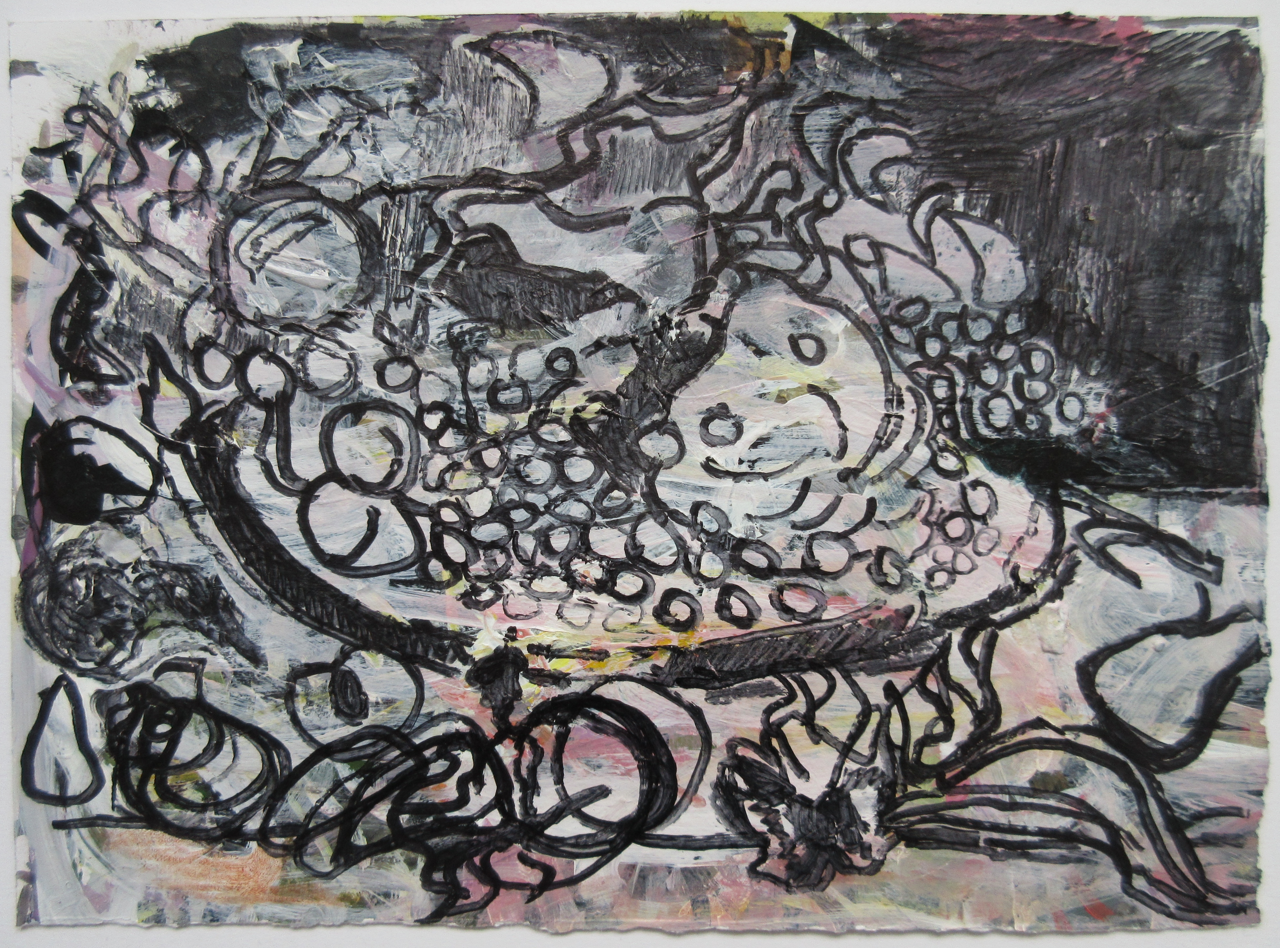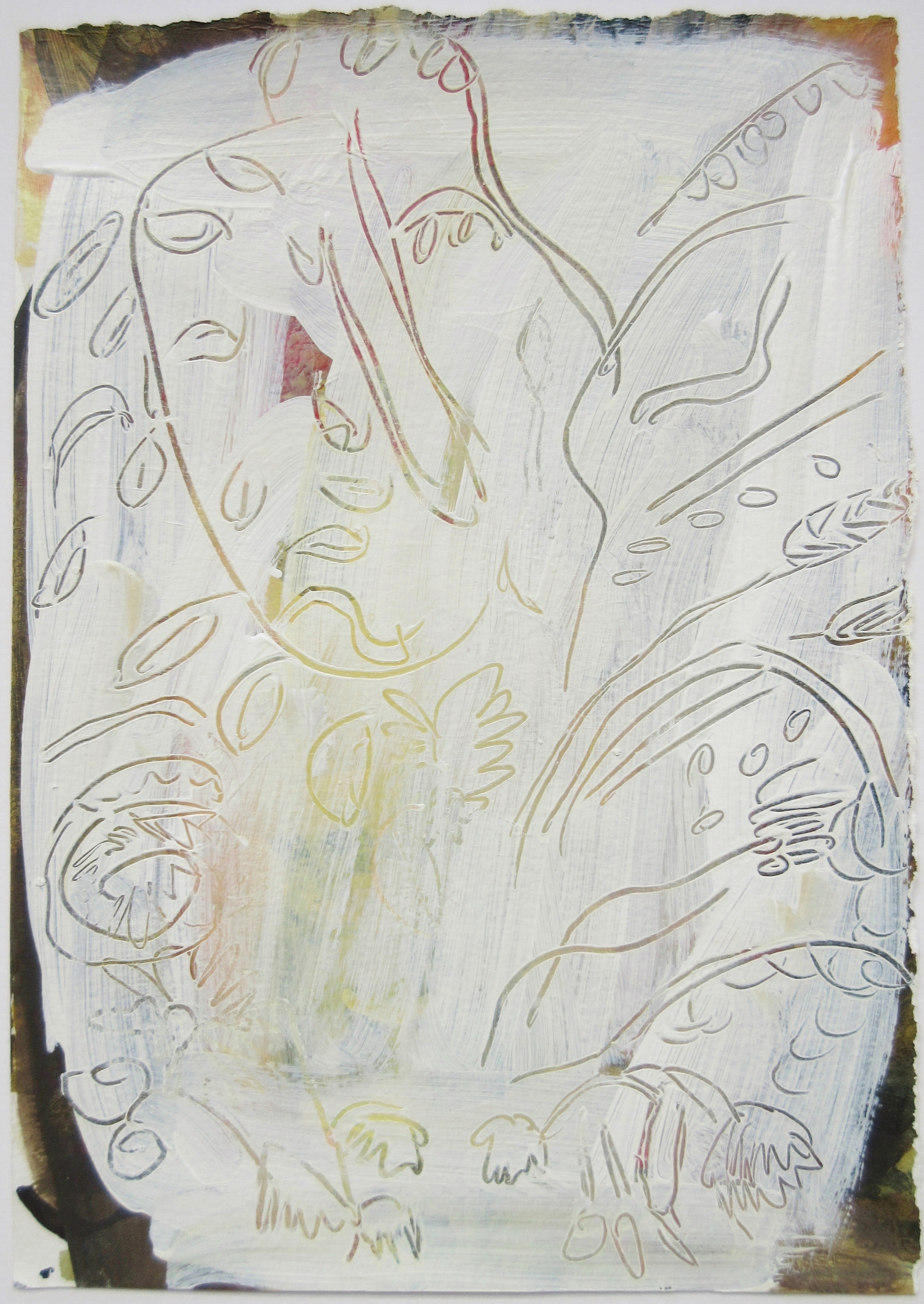 White Series: A series of 5 artworks using drawing on wet paint which was layered on pre-existing surfaces
