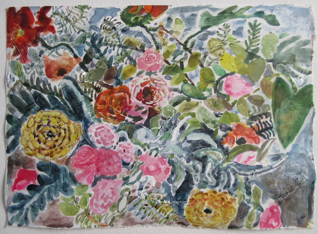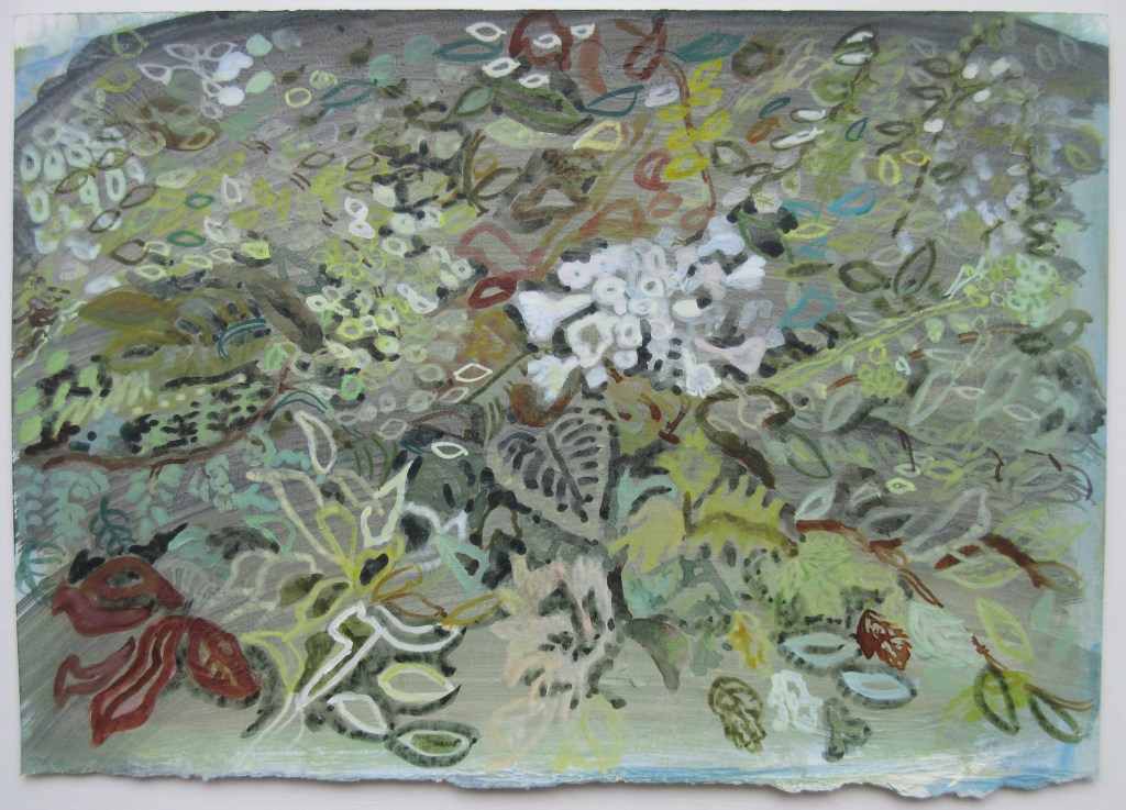 Miniature Garden Watercolour and Ink on Primed Paper 15 x 21cm SOLD