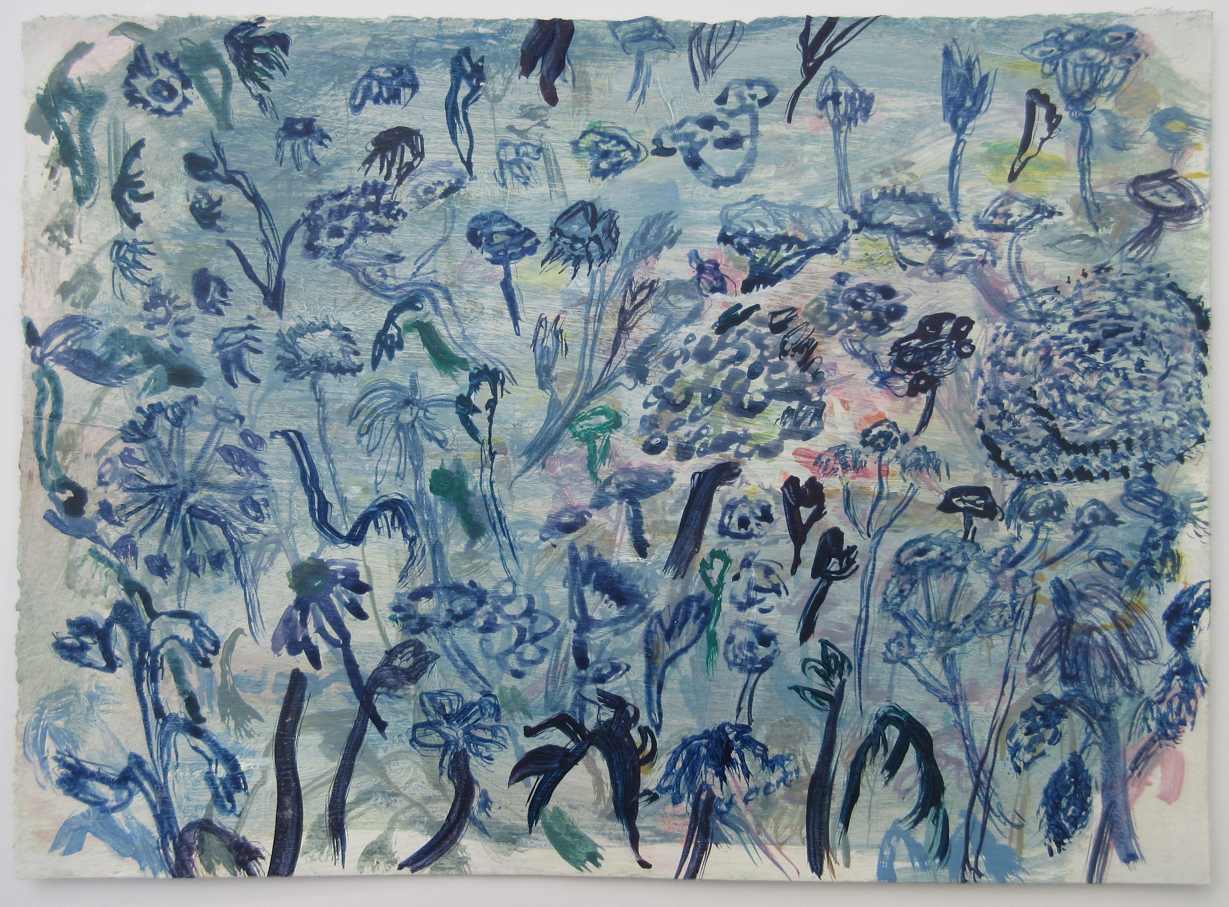 Field in Blue Ink Acrylic and Watercolour on Primed Paper 21 x 31cm